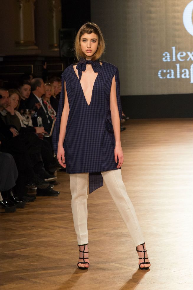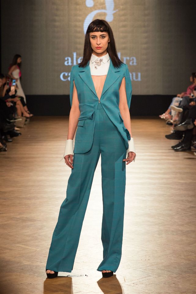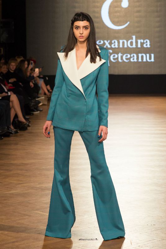 Colecția capsulă de inspirație masculină Wo | Man a fost prezentată la unul dintre cele mai așteptate evenimente ale industriei de fashion. Aceasta pune în valoare întălnirea inedită dintre o femeie și un bărbat. Cele două stiluri se întrepătrund, femeia preluând din atitudinea bărbatului, păstrându-și însă în același timp feminitatea și senzualitatea. Prin liniile simple, clasice, ținutele capătă eleganță, oferindu-i doamnei rolul principal în jocul de putere și seducție. Combinațiile de tafta cu stofă în carouri, de mătase cu neopren, nuanțele de roz intens cu alb, albastru cu dungi verticale și turquoise cu alb au conturat viziunea completă și inedită asupra femeii puternice care își păstrează grația și delicatețea în ținutele office. Alexandra Calafeteanu a pus față în față simplitatea cu abordarea sofisticată, totul pe scena Romanian Fashion Philosophy.