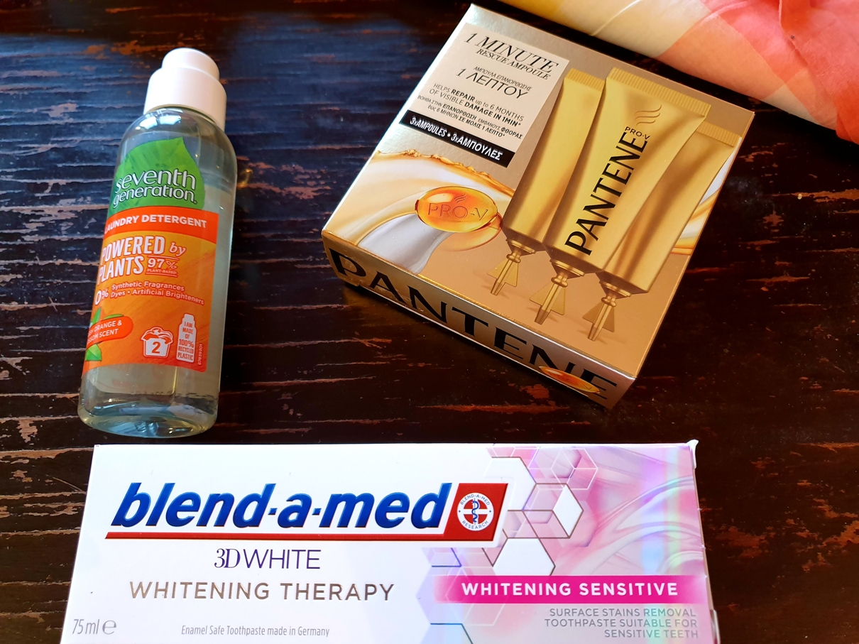 Am primit și am testat o serie de produse excepționale, printre care se numără și gel de duș cu trandafir și bergamotă de la Alverde, mini-roll on antistres de la Purarom, produse de curățare Denkmit (înălbitor, detergent lichid, apă pentru fierul de călcat și șervețele captare culoare și murdărie), produse de igienă intimă de la Intima+ și Organyc, antiperspirant natural Biobaza, produse de îngrijire facială Naobay Detox (cremă, mască de față și spray tonifiant), un set format dintr-un balsam calmant multifuncțional Dr. PawPaw și un balsam colorant de la aceeași firmă (pe care eram deja tentată să le cumpăr), pastă de dinți Blend-a-med 3D Whitening Therapy Sensitive (iar cei mici erau îmbiați cu variantele pentru copii), tratament de păr de la Pantene PRO-V, detergent Seventh Generation, șervețele umede Bambo Nature și șampon și balsam cu extracte organice de migdale și coacăze negre Naturaverde Bio, perfecte chiar și pentru părul meu fin și deteriorat.