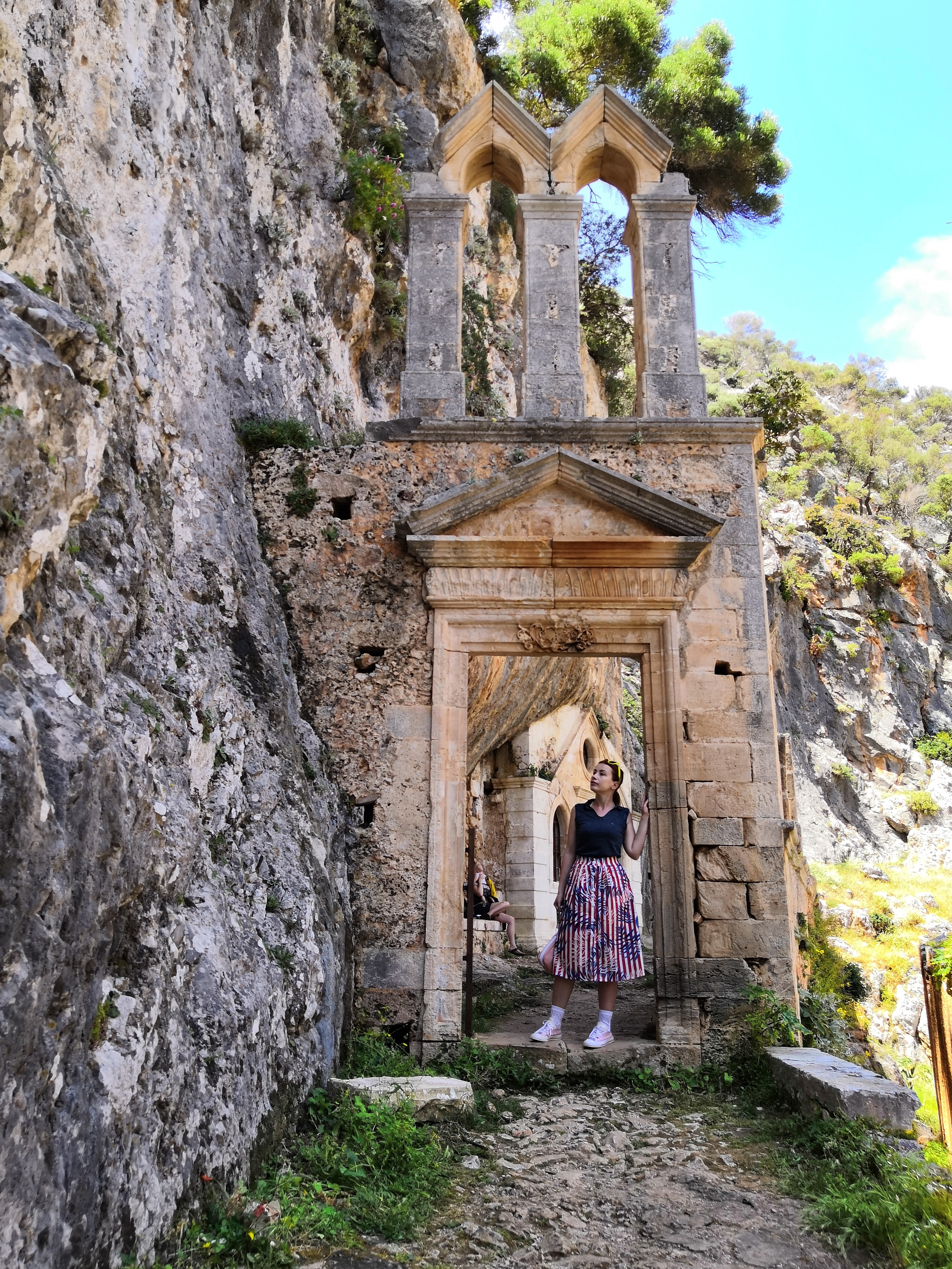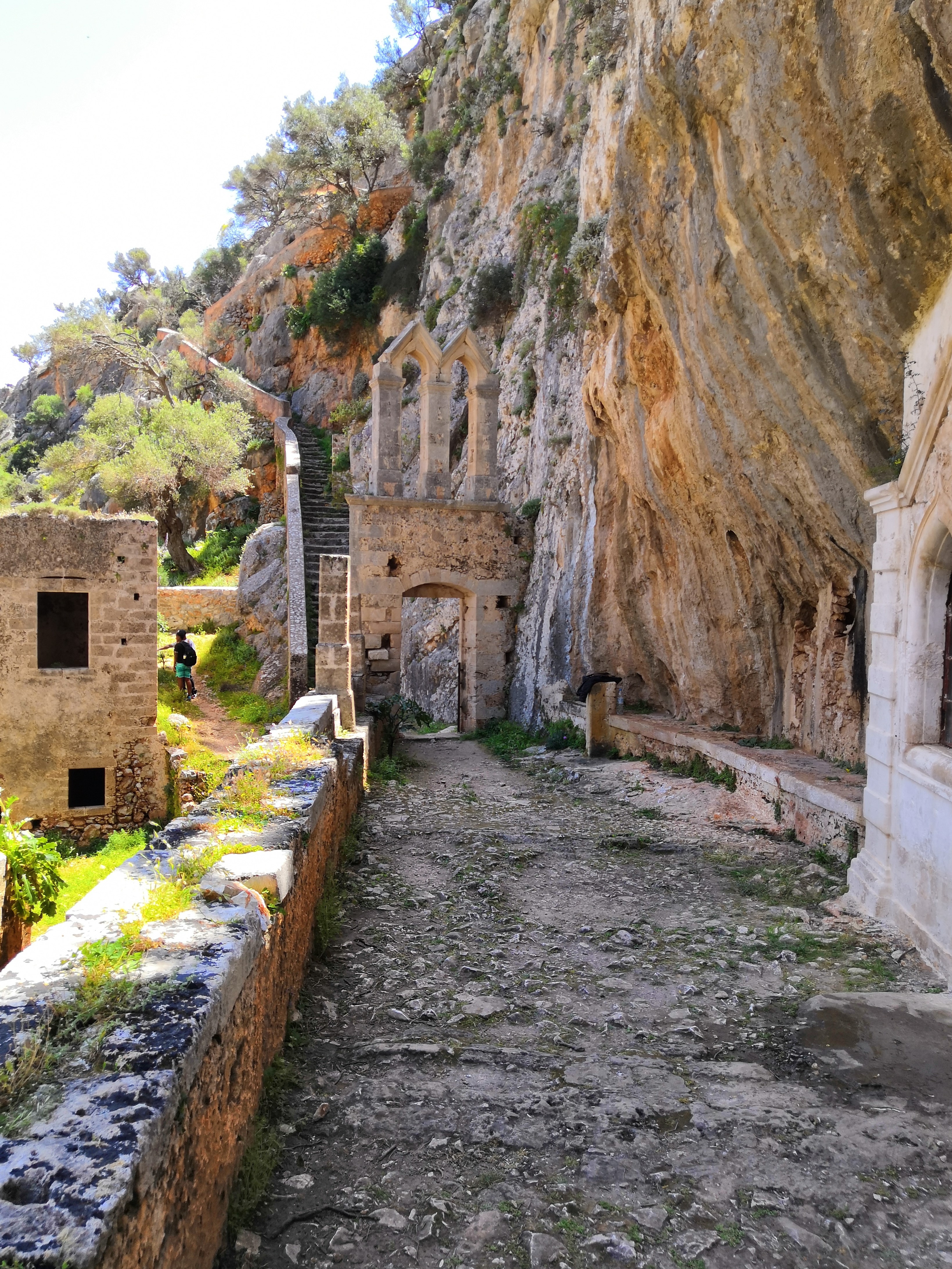 Sunt aproximativ 20 de minute până la această peșteră, care se numește Arkoudospilios, și până la mica chilie de lângă ea. Apoi mai sunt încă 20 de minute până la un loc desprins parcă din Lord of The Rings: ruinele celei mai vechi mânăstiri din Creta, Katholiko. Tot aici se află și peștera Sf. Ion, Sihastrul. Pentru mine, traseul s-a încheiat la Katholiko, fiindcă nici eu, nici companionul nu eram pregătiți să mergem mai jos. Știam însă că, dacă am fi avut echipament la noi, am fi putut să trăim pe deplin o altfel de vacanță în Grecia. La 15 minute de coborâre se află un mic fiord altadată frecvent atacat de pirați, cu apă turcoaz și peisaj de vis.