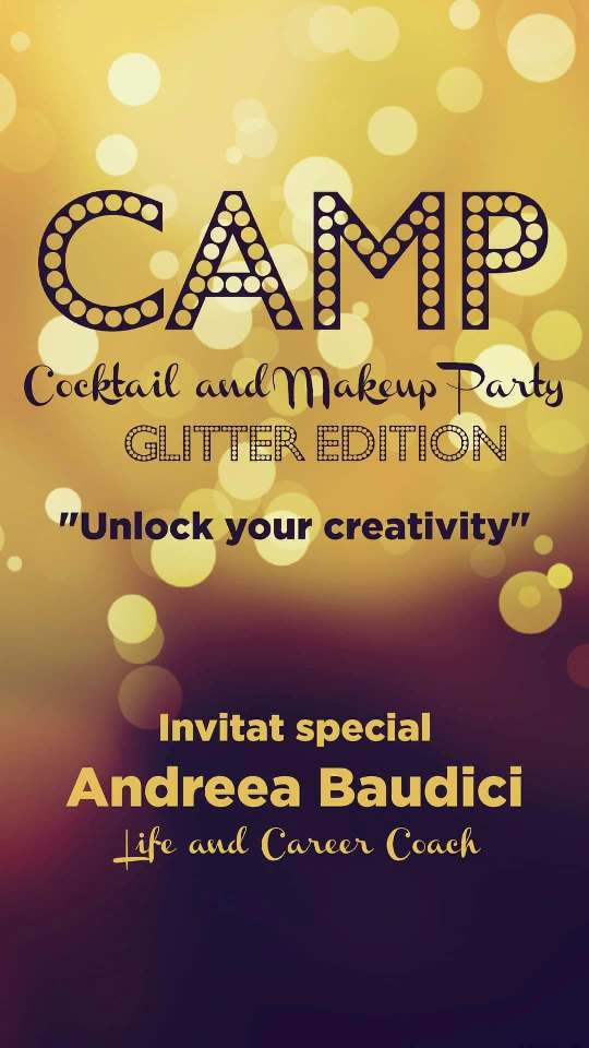 Tema CAMP Glitter Edition a fost „Unlock your creativity” și am avut-o alături și pe Andreea Baudici, Life Coach & Trainer, care ne-a arătat cum să ne depășim blocajele de creativitate. Alături ne-au fost și branduri de renume, care vor să afle mai multe despre cum se creează frumusețea adevărată: Complete Beauty, Salerm, Lendan, Cellulem Block Unirii, Paese, Gerovital, Bioderma, Marionnaud, 7th Heaven, Clineo, Cremeria, Nedelya, Amway, Borderline Photography, SOTO.