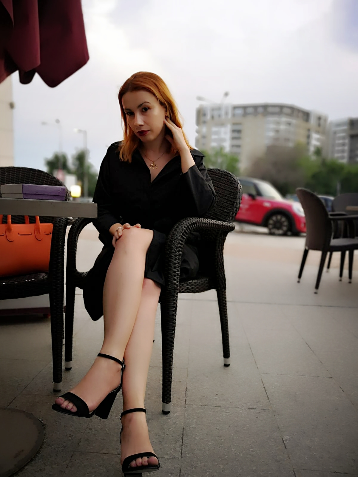 Pentru zi, am ales un sacou negru, comod, din jerseu și sandalele mele preferate de la Dolly Shoes: France X. Seara, am adăugat ținutei o pereche de cercei statement din lemn și am optat pentru sandale France X aurii, strălucitoare.