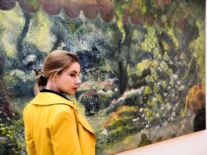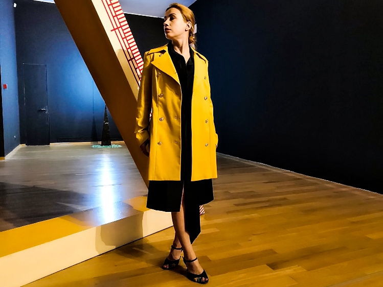 Eu am ales să port un trench coat model clasic, la 10 nasturi, într-o culoare atipică: galben. Și nu oriunde, ci chiar la o întâlnire cu frumosul, la Muzeul de Artă Contemporană din București.